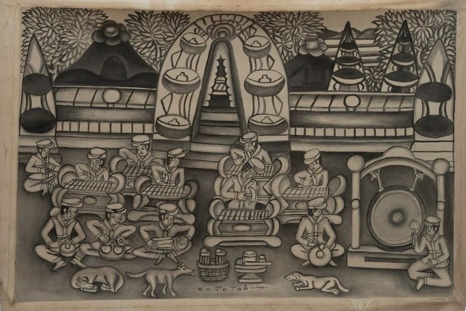 Oleh: Ibrahim Soetomo Pada sebuah perhelatan seni pertunjukan kontemporer yang apik, sekomplot serdadu lengkap dengan seragam formal dan topi petnya terlihat sedang bermain gamelan. Di belakang para pemain, terdapat bangunan menyerupai gerbang candi atau pura yang dipadati oleh pepohonan meninggi rimbun. Di depan para pemain, terdapat tiga ekor anjing dalam posisi berbeda—tidur, berdiri, dan merangkak—yang menambah suasana santai di tengah-tengah ritual musik yang tertib. Inilah salah satu adegan ajaib
